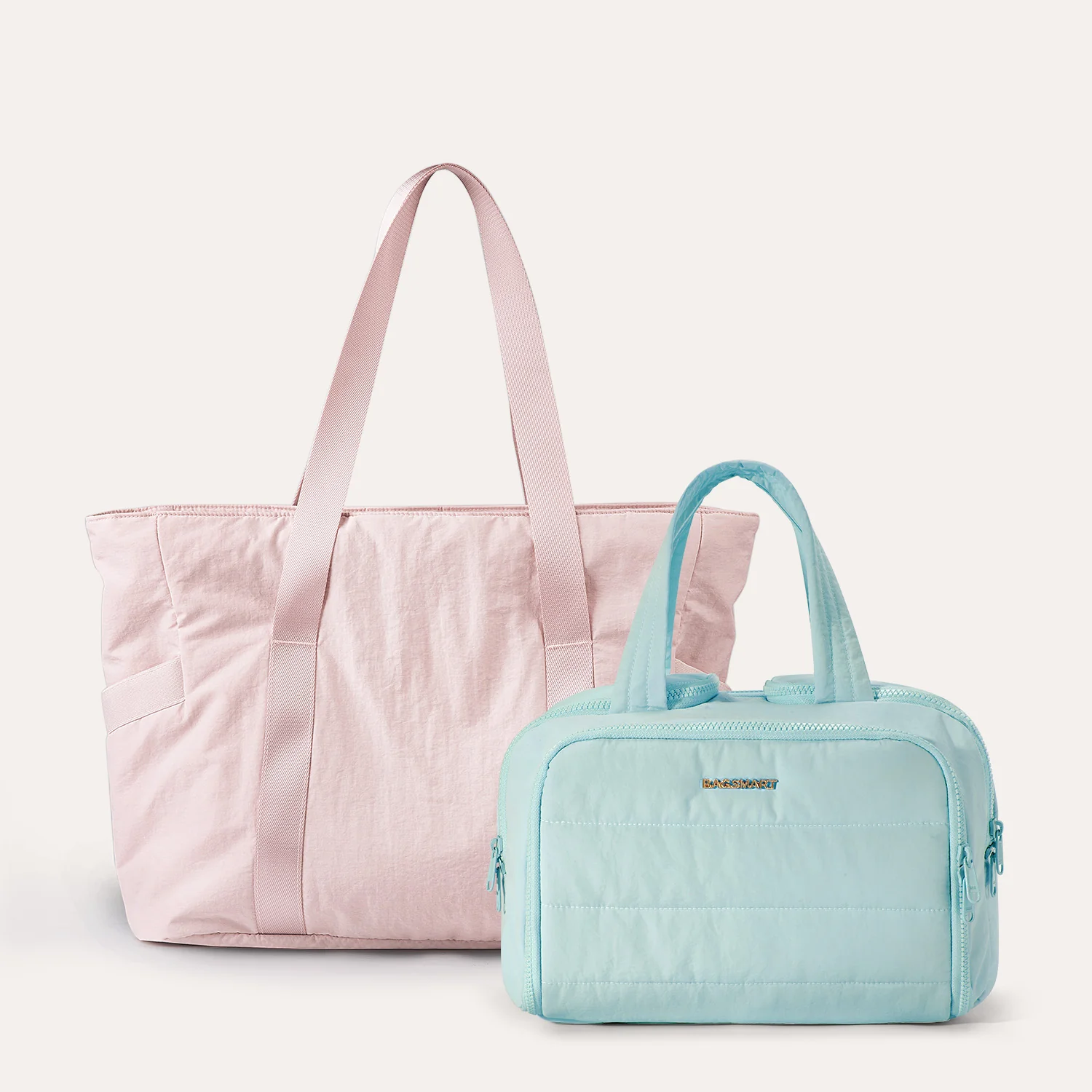 Our versatile daily life set is designed to enhance your daily routines, whether at work, on a trip, or hitting the gym. This set includes a multi-functional tote bag and a 4-in-1 puffy multi-functional toiletry bag, both meticulously crafted to meet your needs.